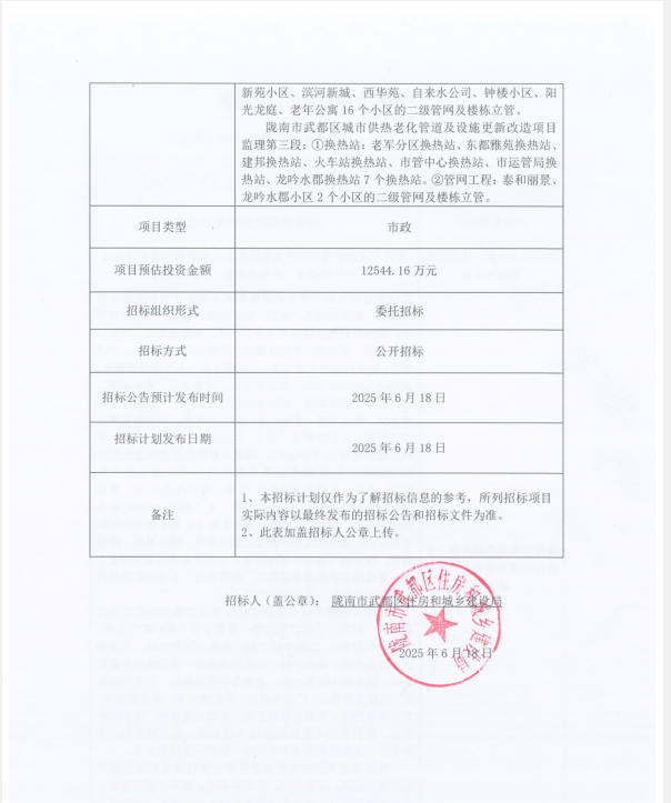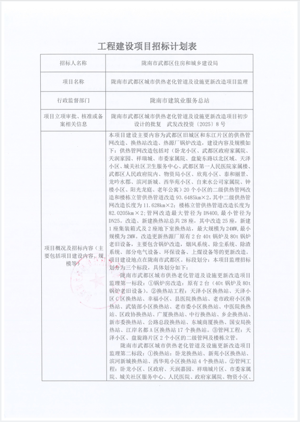 隴南市武都區(qū)城市供熱老化管道及設(shè)施更新改造項(xiàng)目監(jiān)理