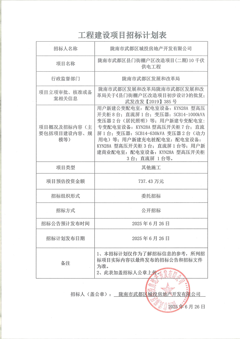隴南市武都區(qū)縣門街棚戶區(qū)改造項(xiàng)目(二期)10千伏供電工程
