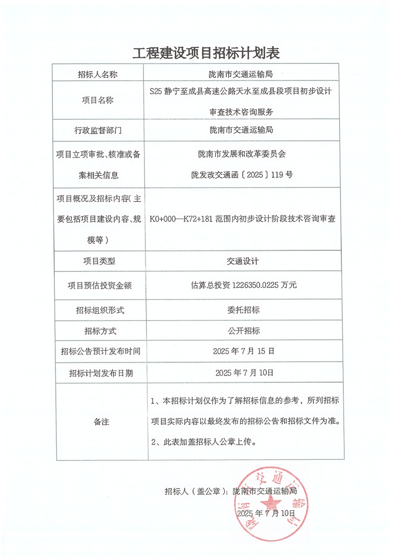 S25靜寧至成縣高速公路天水至成縣段項目初步設(shè)計審查技術(shù)咨詢服務(wù)