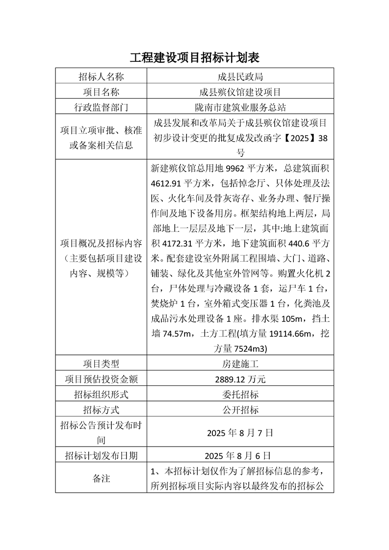 成縣殯儀館建設(shè)項(xiàng)目