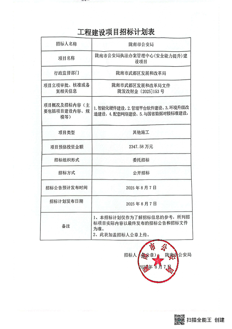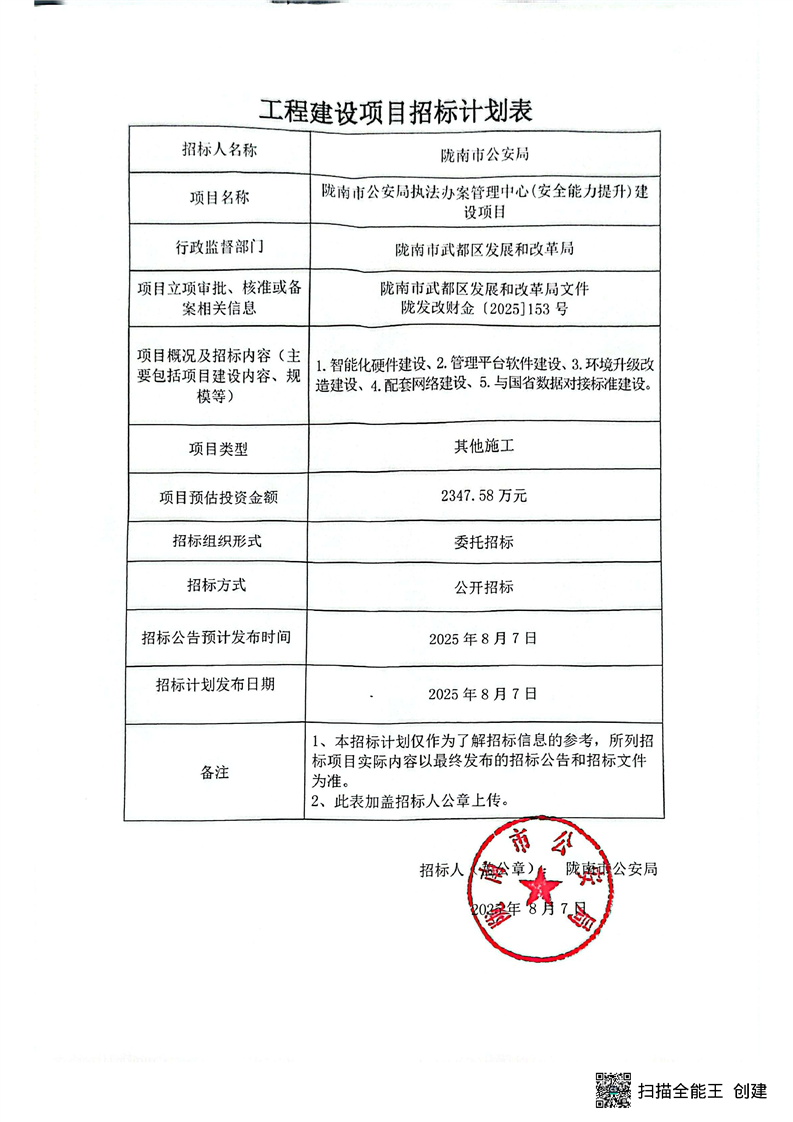 隴南市公安局執(zhí)法辦案管理中心(安全能力提升)建設項目