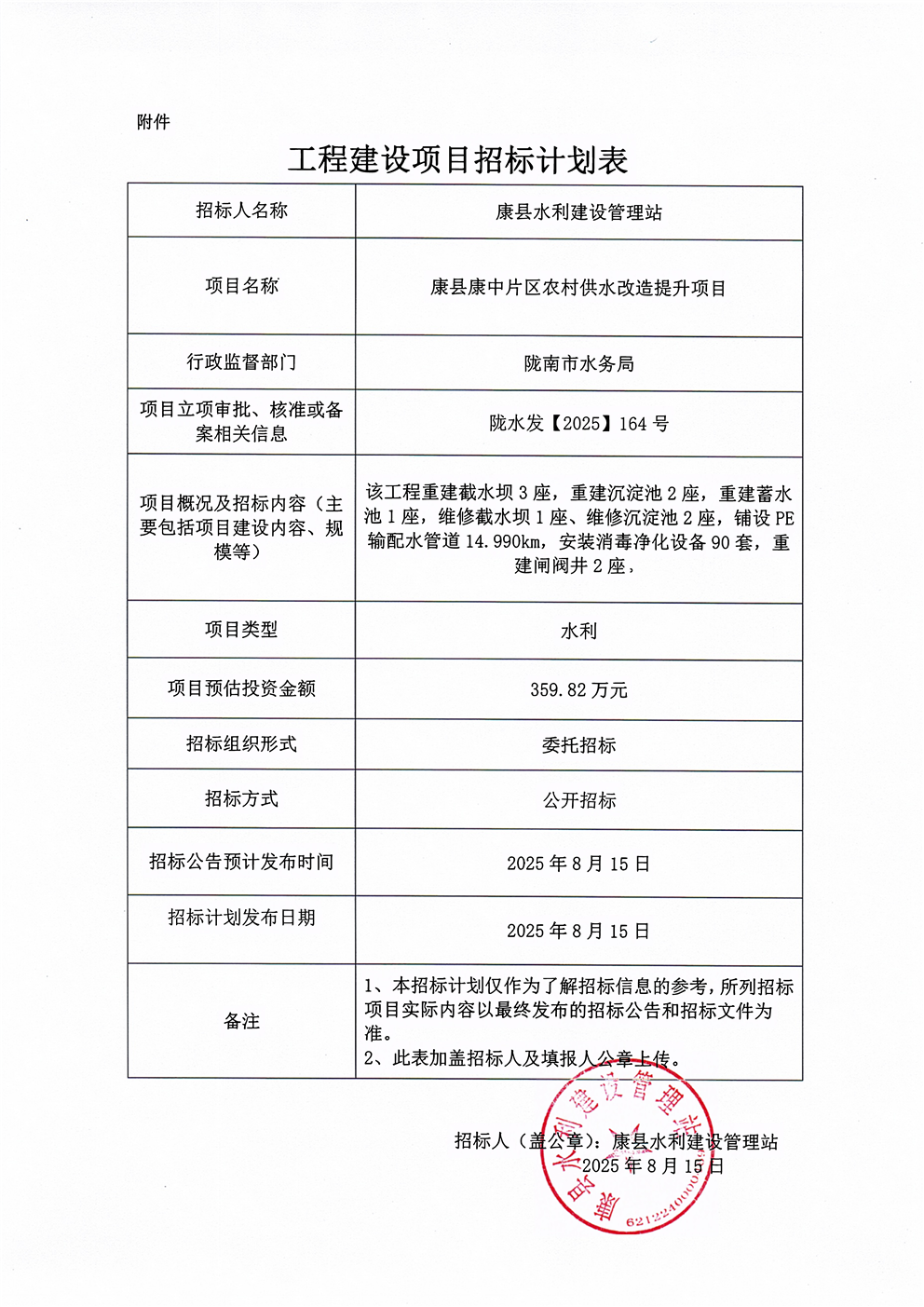 康縣康中片區(qū)農(nóng)村供水改造提升項(xiàng)目