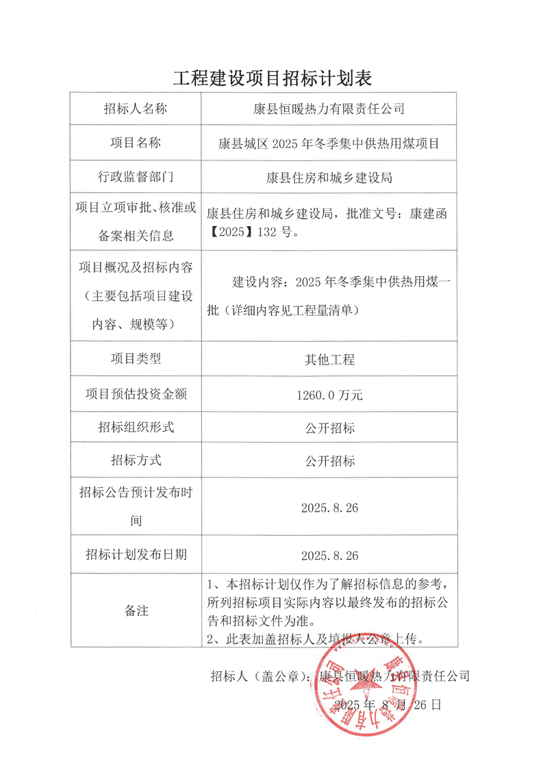 康縣城區(qū)2025年冬季集中供熱用煤項(xiàng)目