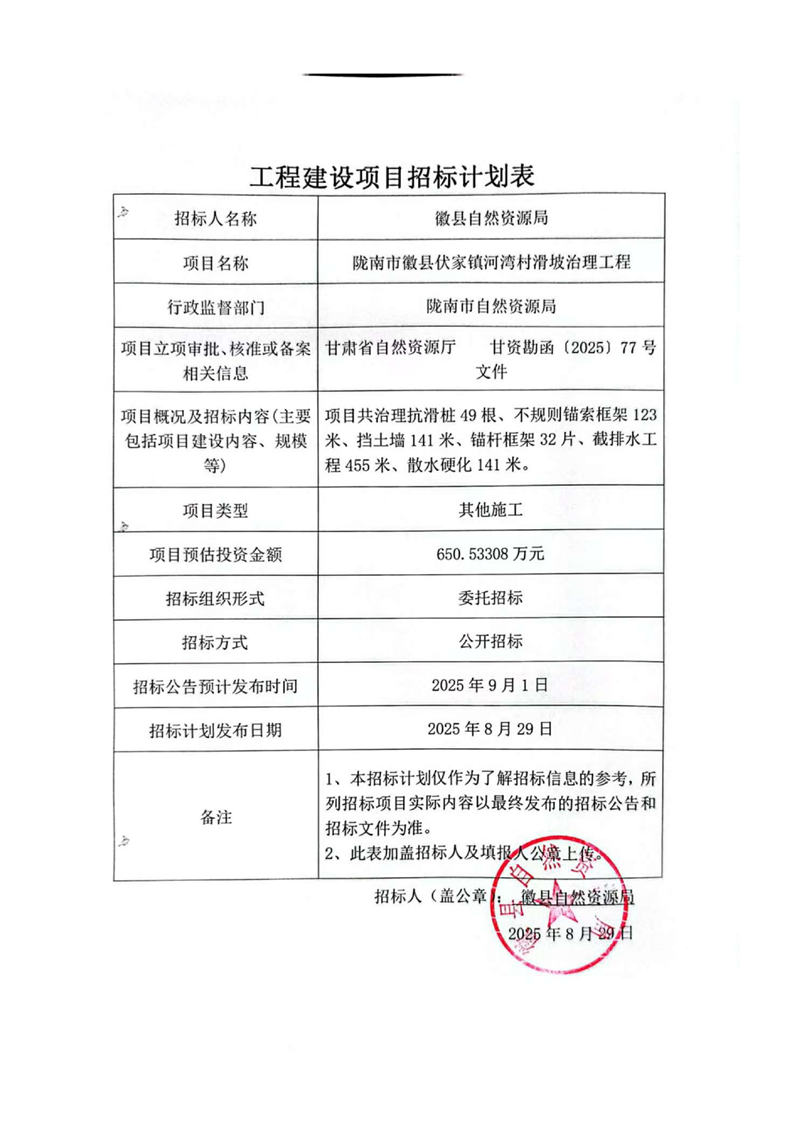 隴南市徽縣伏家鎮(zhèn)河灣村滑坡治理工程