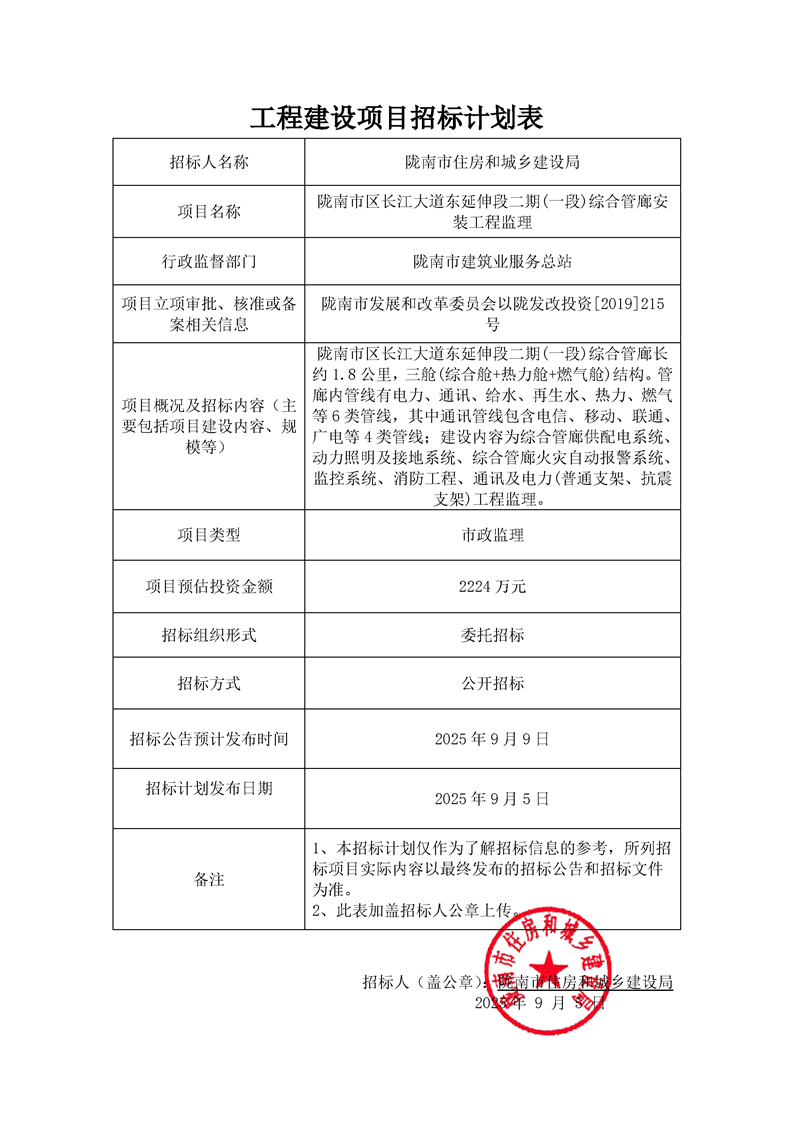 隴南市區(qū)長江大道東延伸段二期(一段)綜合管廊安裝工程監(jiān)理