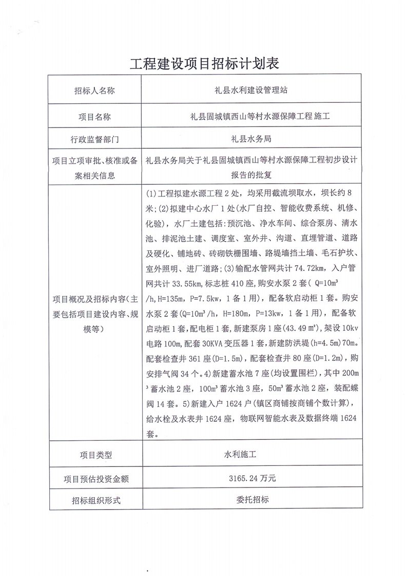 禮縣固城鎮(zhèn)西山等村水源保障工程施工