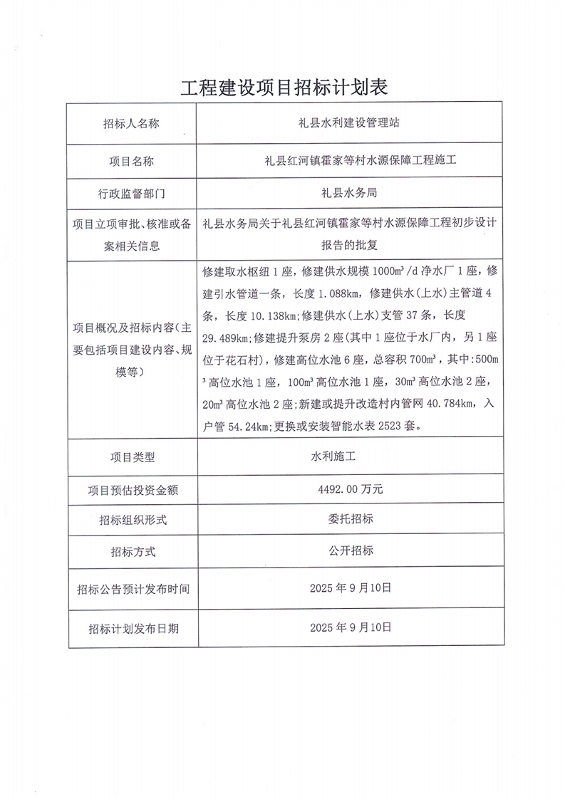 禮縣紅河鎮(zhèn)霍家等村水源保障工程施工