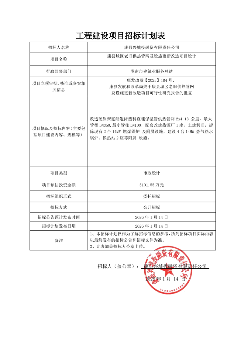康縣城區(qū)老舊供熱管網(wǎng)及設(shè)施更新改造項(xiàng)目設(shè)計