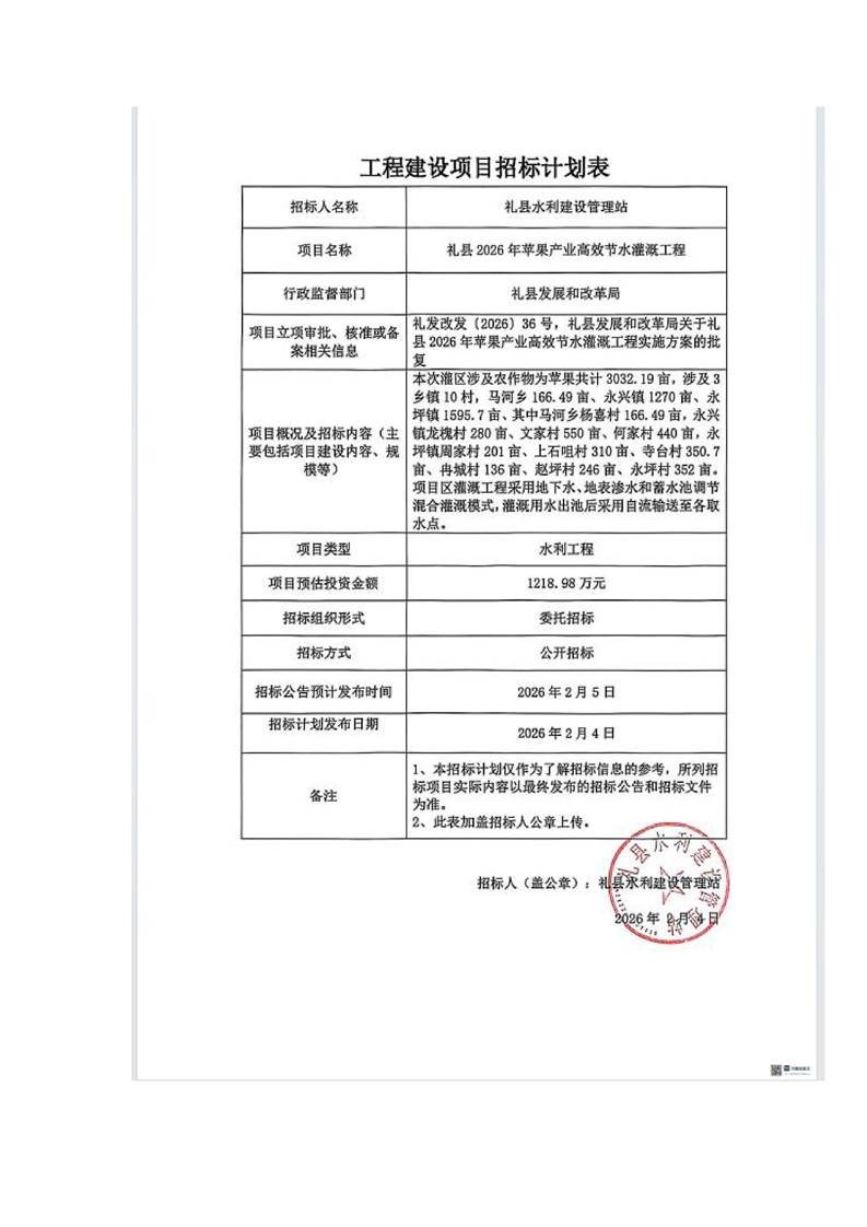 禮縣2026年蘋(píng)果產(chǎn)業(yè)高效節(jié)水灌溉工程