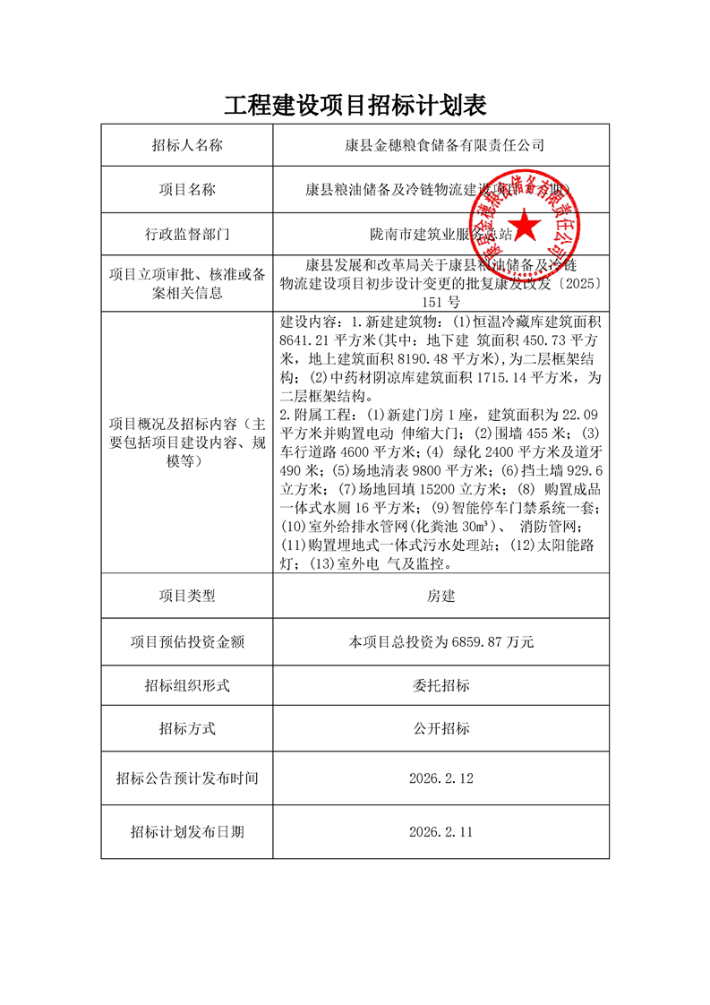 康縣糧油儲備及冷鏈物流建設(shè)項目(二期)