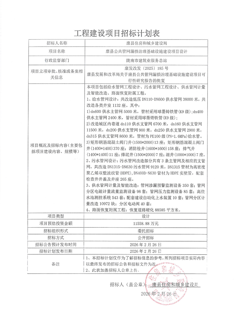 康縣公共管網(wǎng)漏損治理基礎(chǔ)設(shè)施建設(shè)項(xiàng)目設(shè)計(jì)