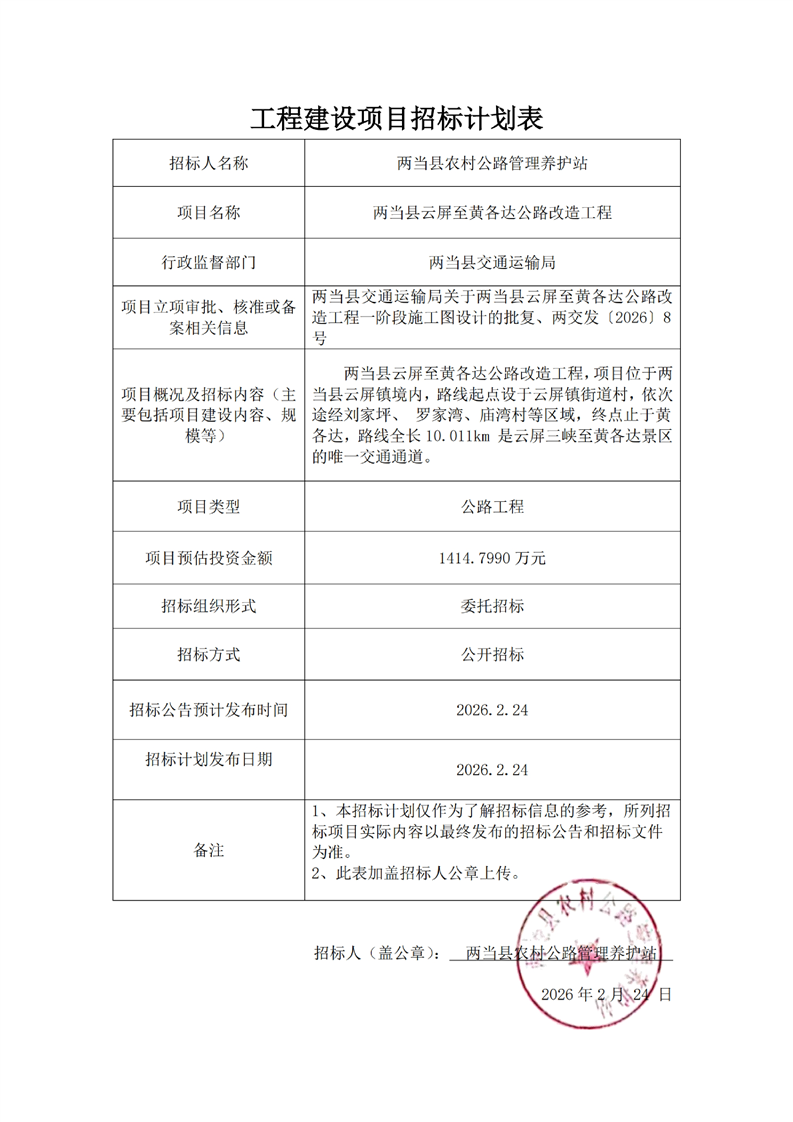 兩當縣云屏至黃各達公路改造工程