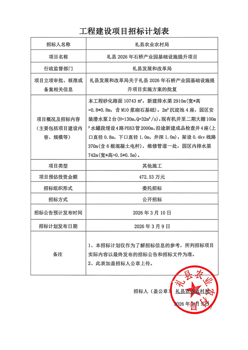 禮縣2026年石橋產(chǎn)業(yè)園基礎(chǔ)設(shè)施提升項(xiàng)目