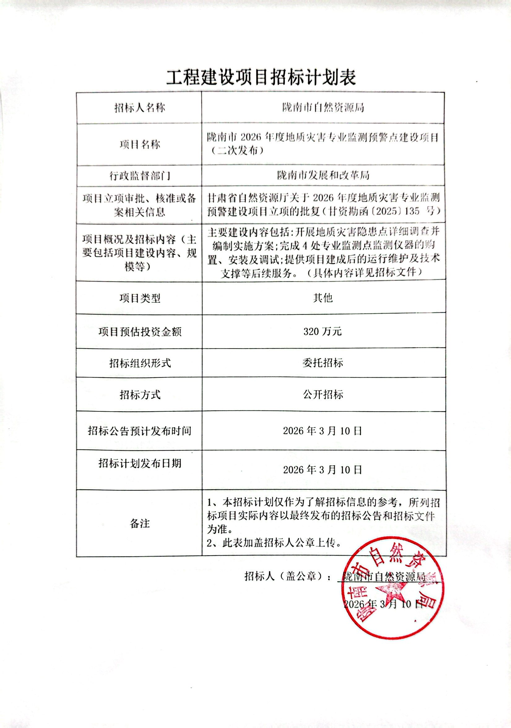 隴南市2026年度地質(zhì)災(zāi)害專業(yè)監(jiān)測預(yù)警點建設(shè)項目(二次發(fā)布)