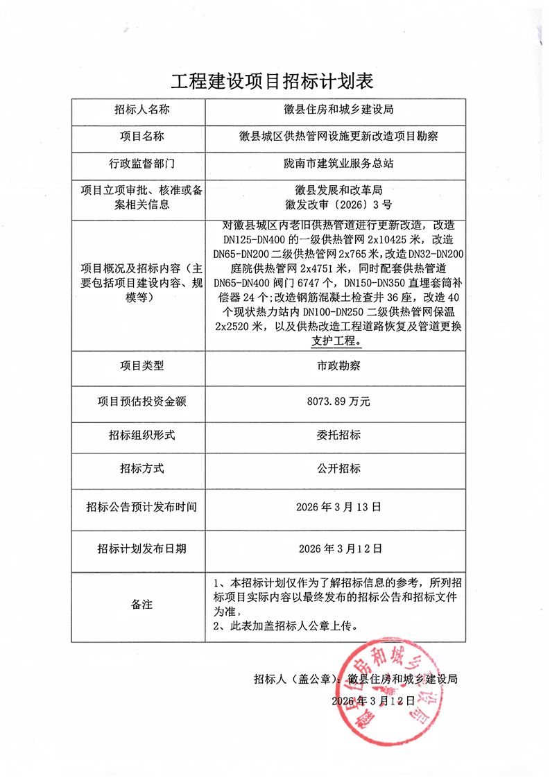 徽縣城區(qū)供熱管網(wǎng)設(shè)施更新改造項目勘察