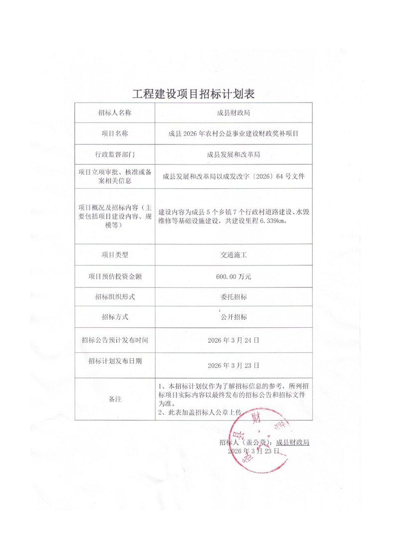 成縣2026年農(nóng)村公益事業(yè)建設(shè)財(cái)政獎(jiǎng)補(bǔ)項(xiàng)目