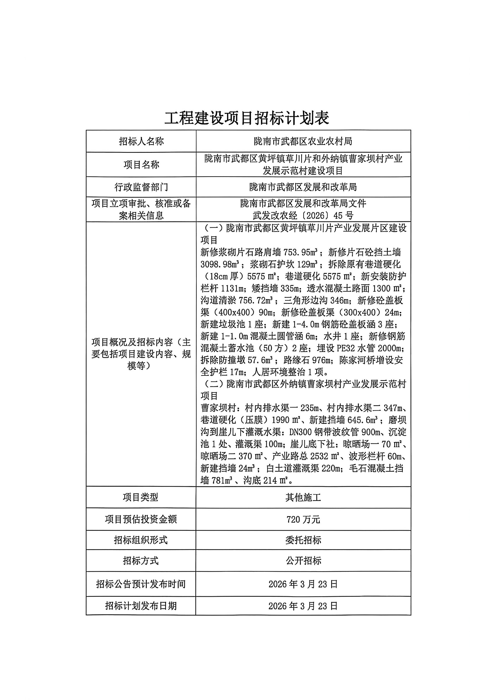 隴南市武都區(qū)黃坪鎮(zhèn)草川片和外納鎮(zhèn)曹家壩村產(chǎn)業(yè)發(fā)展示范村建設(shè)項(xiàng)目