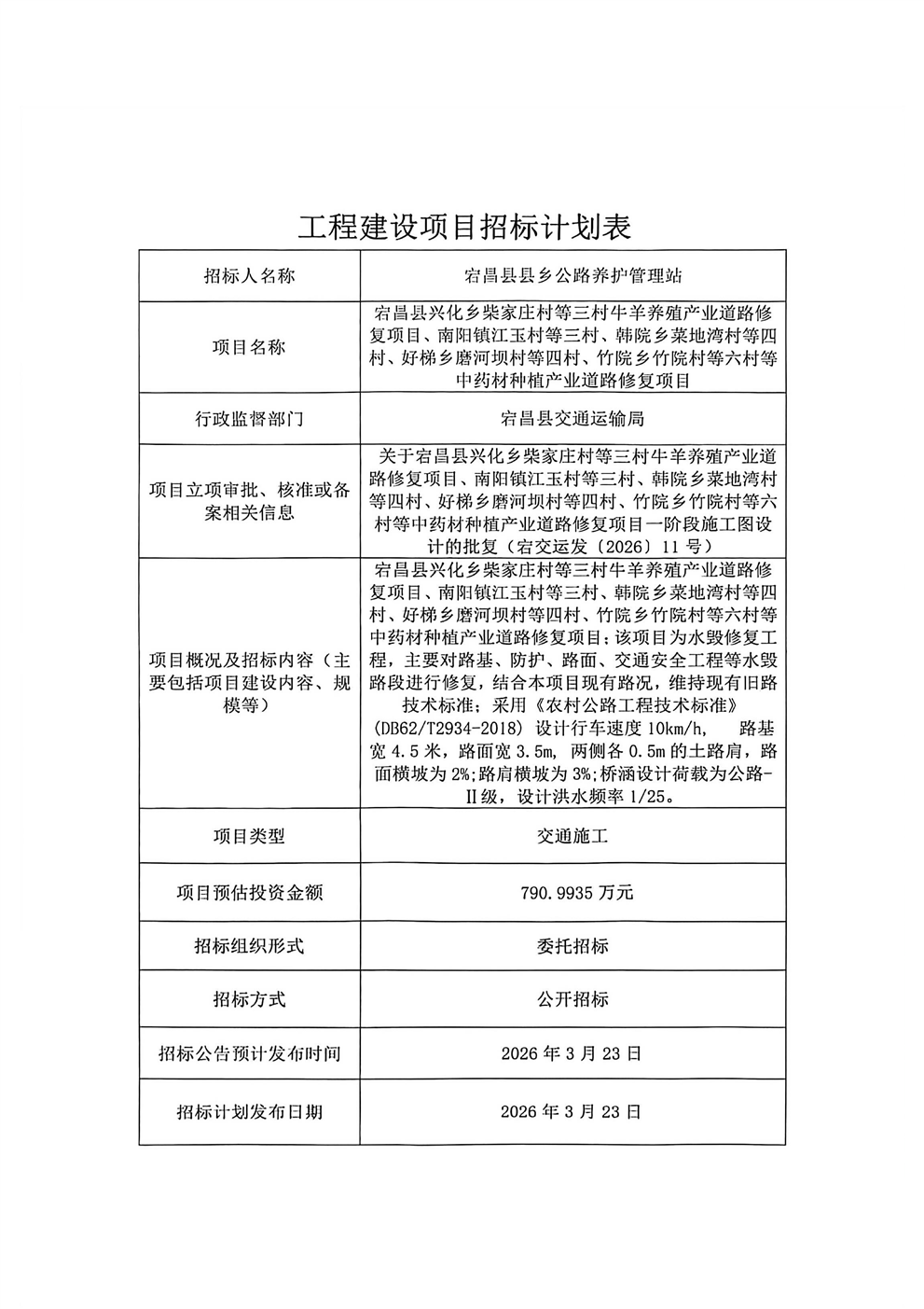 宕昌縣興化鄉(xiāng)柴家莊村等三村牛羊養(yǎng)殖產(chǎn)業(yè)道路修復(fù)項(xiàng)目、南陽鎮(zhèn)江玉村等三村、韓院鄉(xiāng)菜地灣村等四村、好梯鄉(xiāng)磨河壩村等四村、竹院鄉(xiāng)竹院村等六村等中藥材種植產(chǎn)業(yè)道路修復(fù)項(xiàng)目