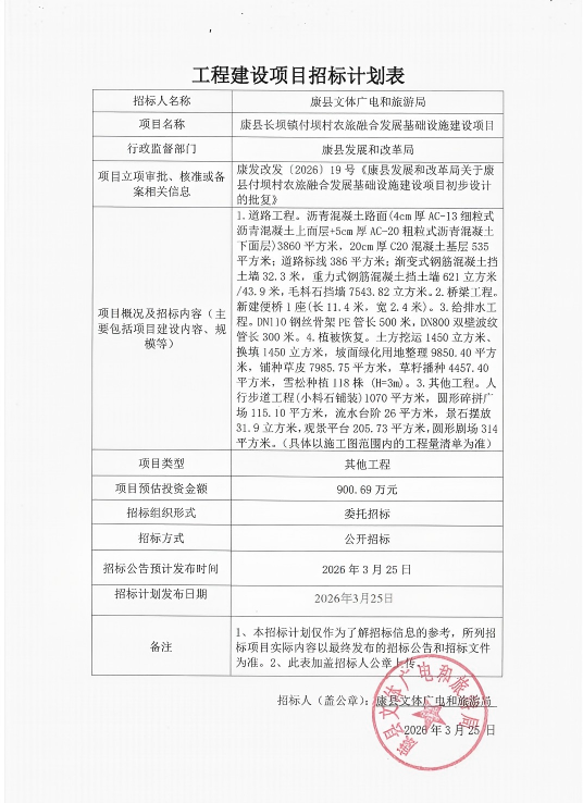 康縣長壩鎮(zhèn)付壩村農(nóng)旅融合發(fā)展基礎(chǔ)設(shè)施建設(shè)項目