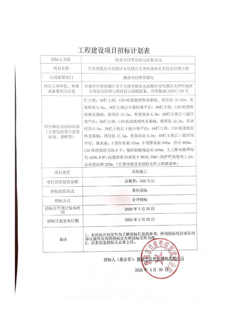 甘肅省隴南市武都區(qū)安化鎮(zhèn)石大坪村地質(zhì)災(zāi)害綜合治理工程項(xiàng)目