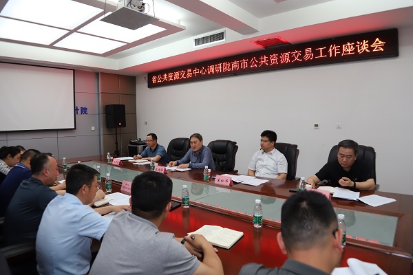 6月6日,省公共資源交易中心黨組書記、主任趙建鋒一行深入隴南,調(diào)研公共資源交易“全省一張網(wǎng)”建設(shè)、優(yōu)化營商環(huán)境等工作并召開座談會。市委常委、副市長朱松華陪同調(diào)研。